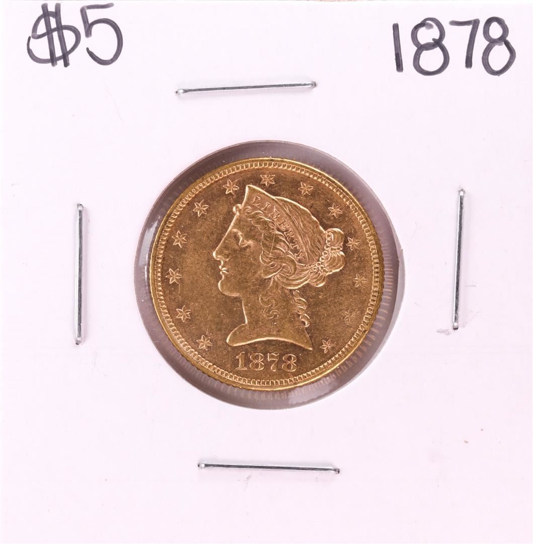 One 1878 $5 Liberty Head Half Eagle Gold Coin.