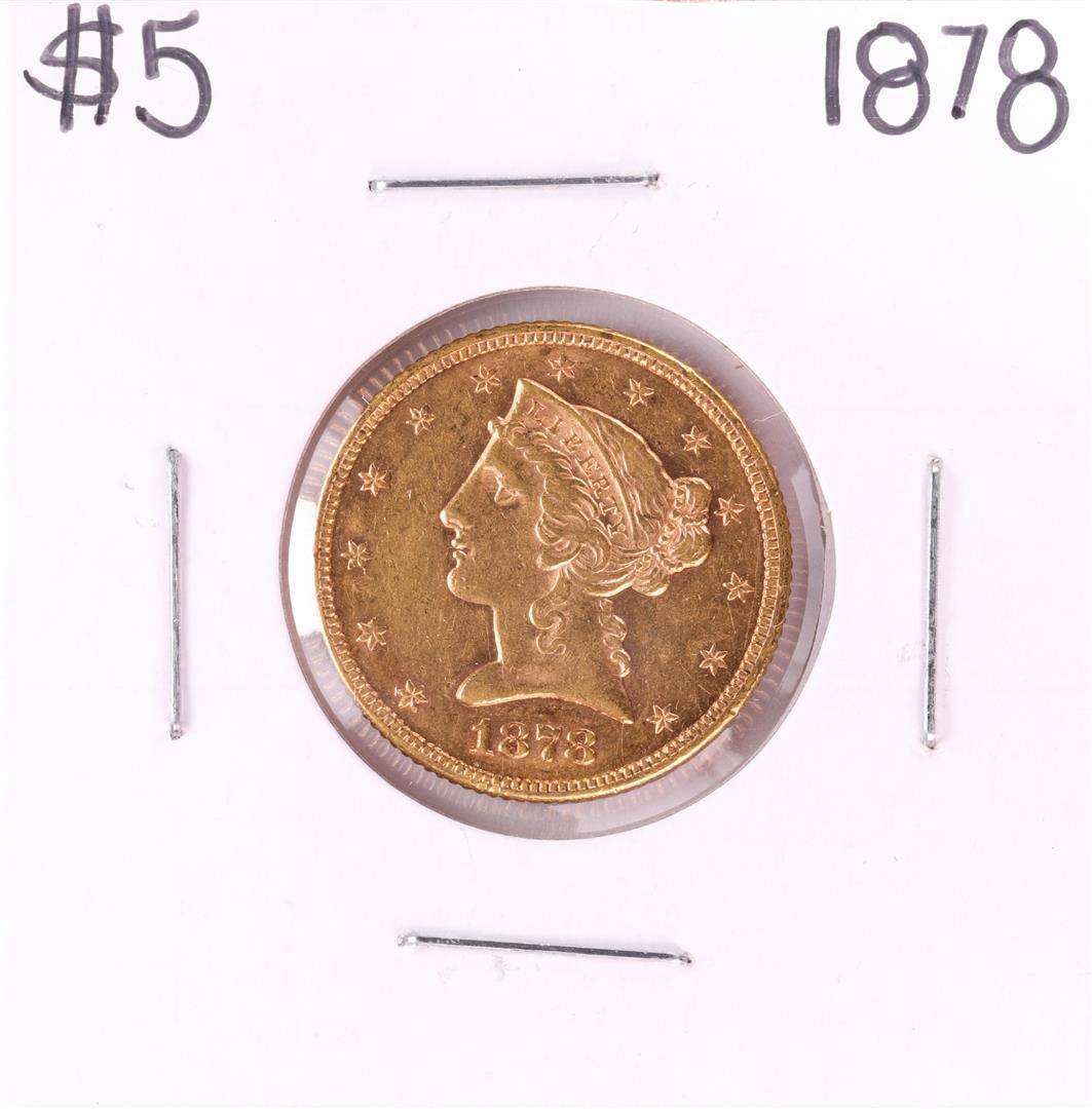 One 1878 $5 Liberty Head Half Eagle Gold Coin.