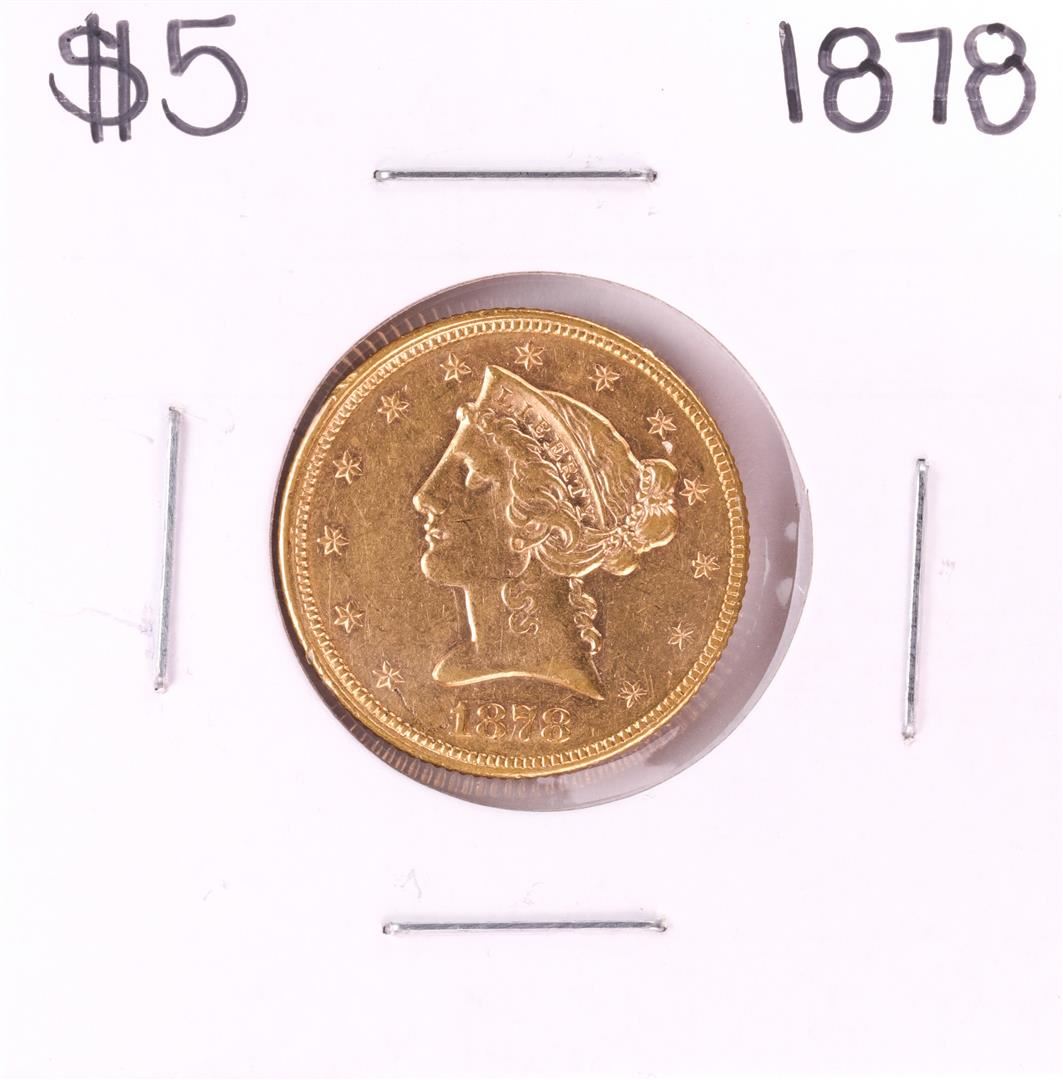 One 1878 $5 Liberty Head Half Eagle Gold Coin.
