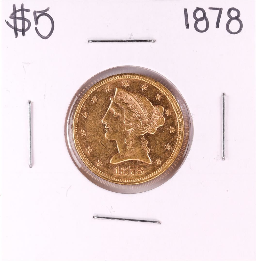One 1878 $5 Liberty Head Half Eagle Gold Coin.