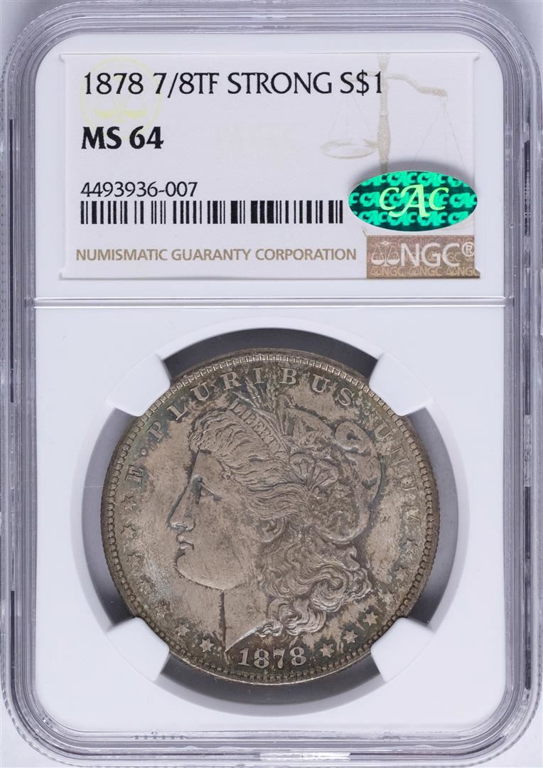 One 1878 7/8TF STRONG $1 Morgan Silver Dollar Coin NGC MS64 CAC. NGC Certified.