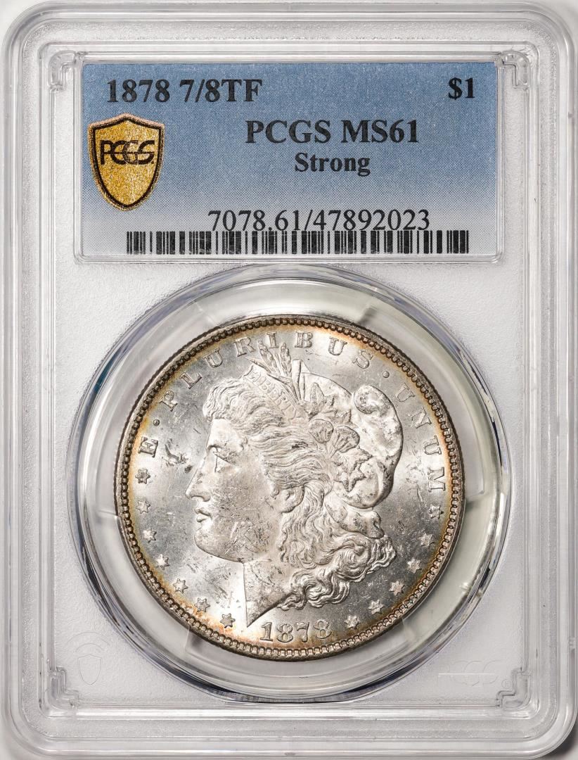 One 1878 7/8TF Strong $1 Morgan Silver Dollar Coin PCGS MS61. PCGS Graded.