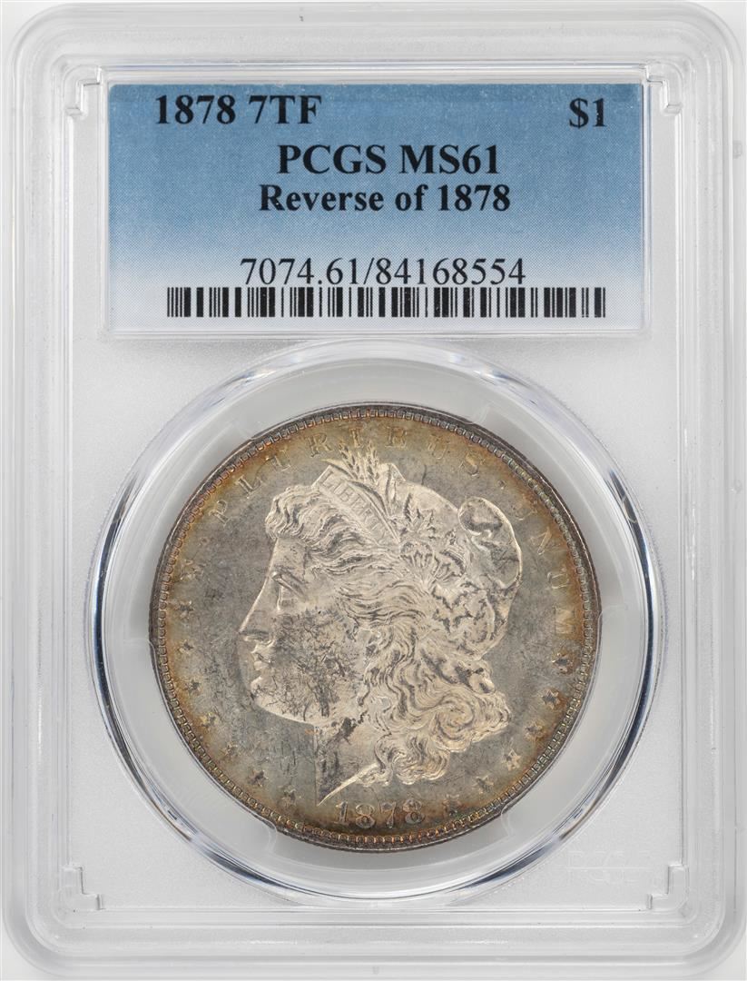 One 1878 7TF $1 Morgan Silver Dollar Coin PCGS MS61. PCGS Graded.