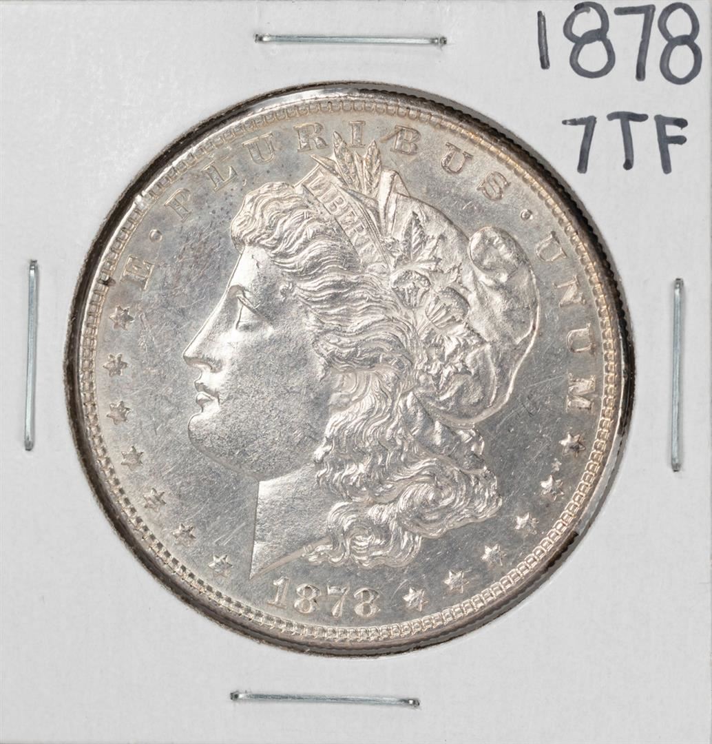 One 1878 7TF $1 Morgan Silver Dollar Coin.