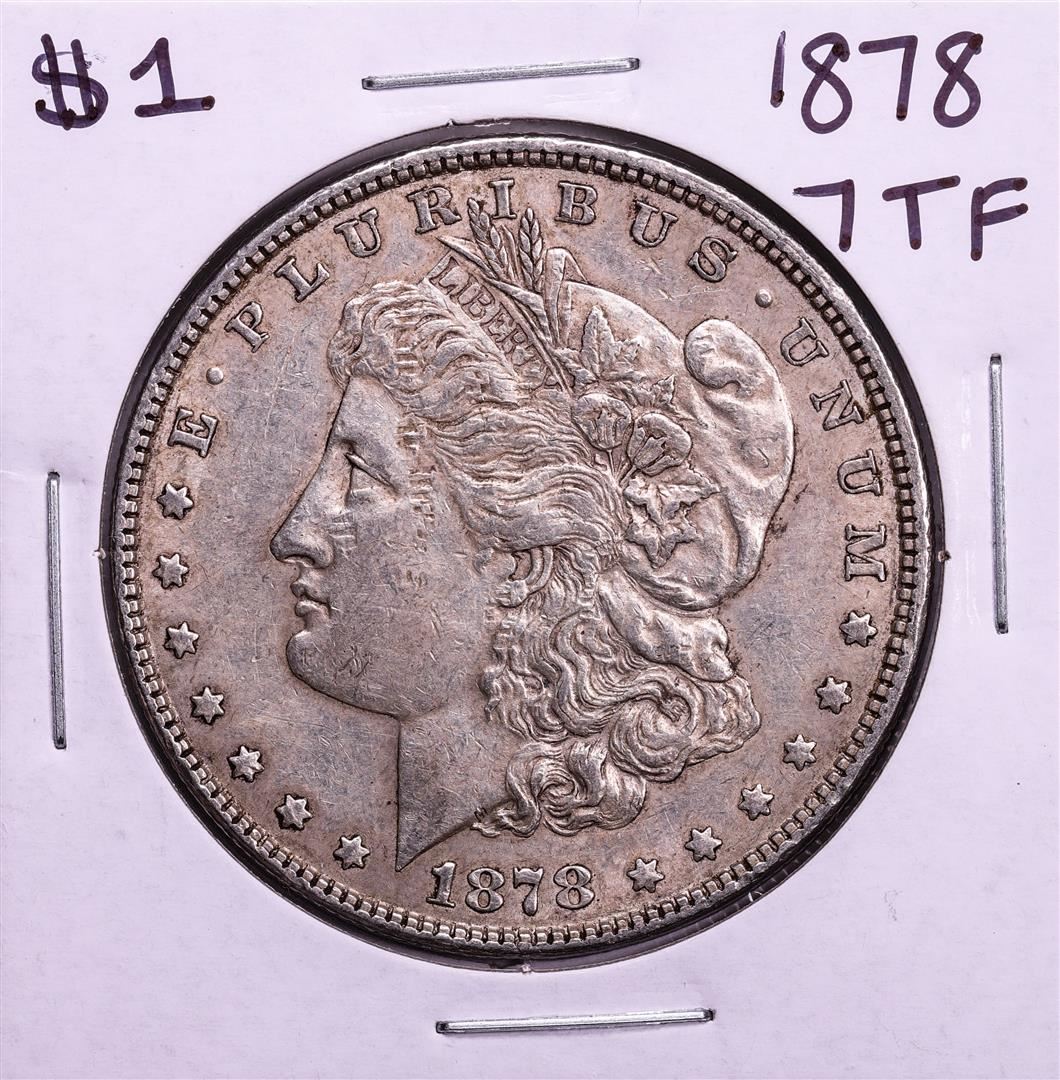 One 1878 7TF $1 Morgan Silver Dollar Coin.