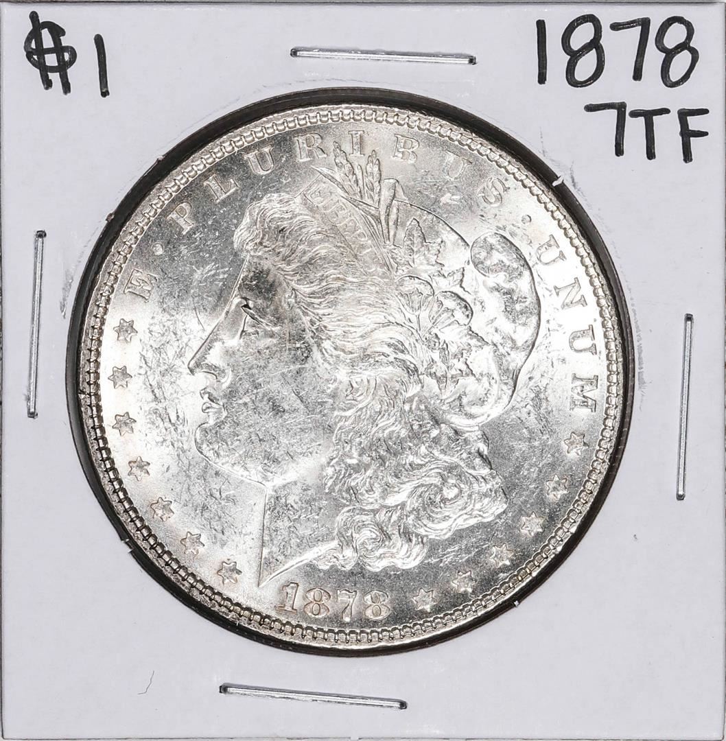 One 1878 7TF $1 Morgan Silver Dollar Coin.