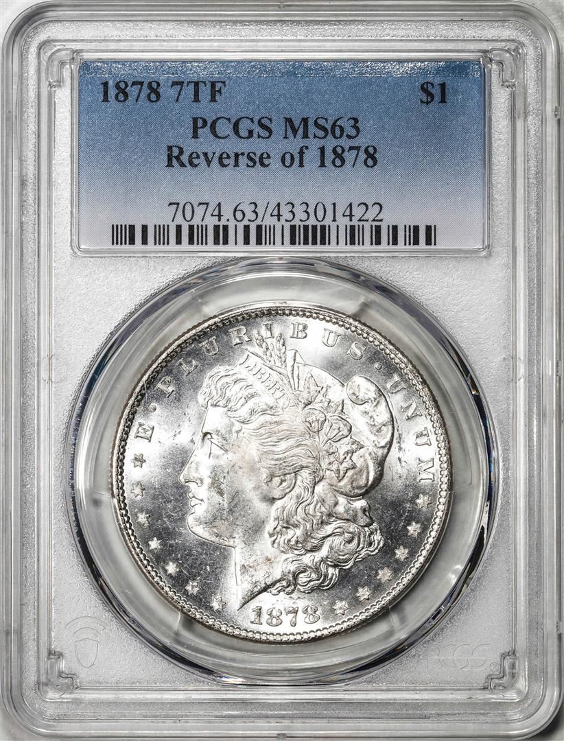 One 1878 7TF Rev of 1878 $1 Morgan Silver Dollar Coin PCGS MS63. PCGS Graded.