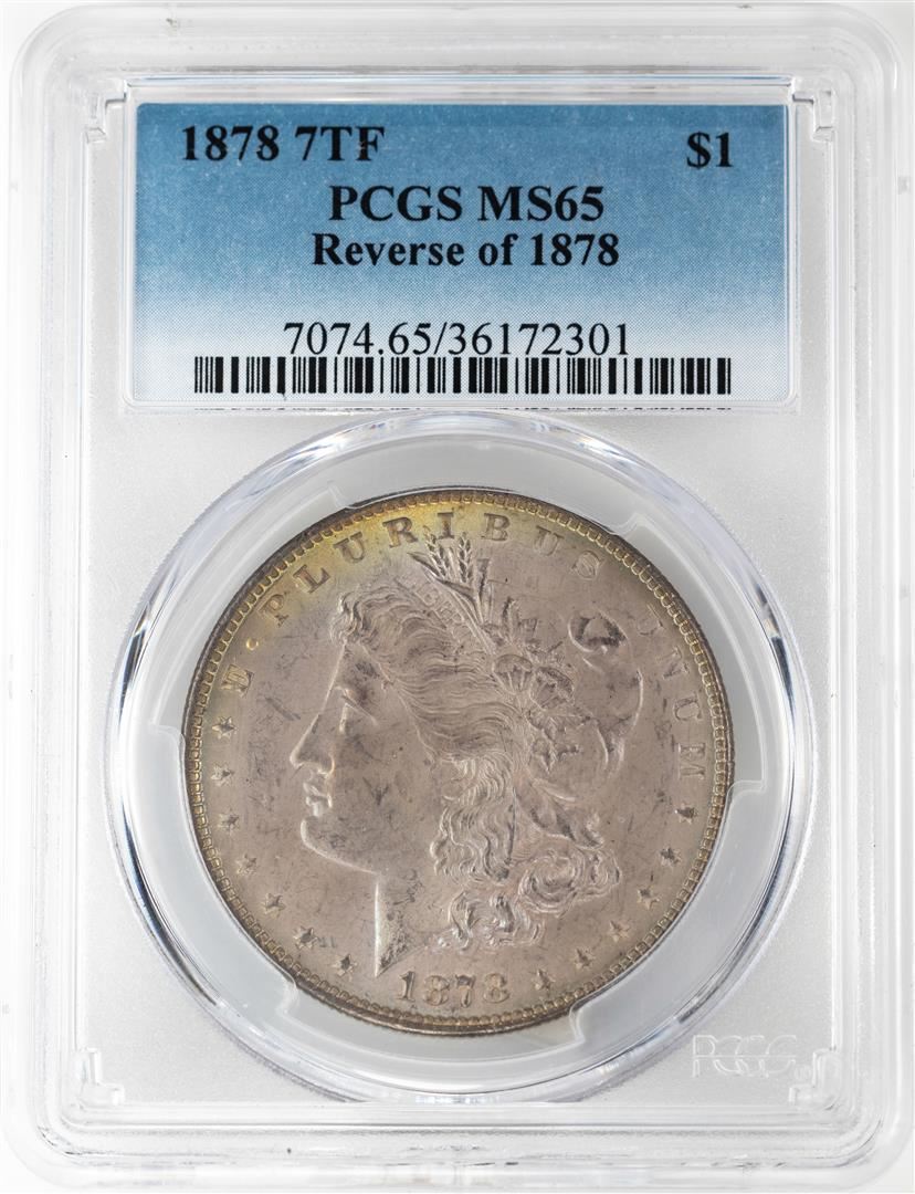 One 1878 7TF Reverse of 1878 $1 Morgan Silver Dollar Coin PCGS MS65 Nice Toning. PCGS Graded.