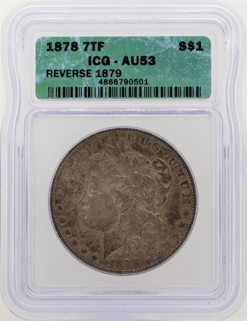 1878 7TF Reverse of 79' $1 Morgan Silver Dollar Coin ICG AU53