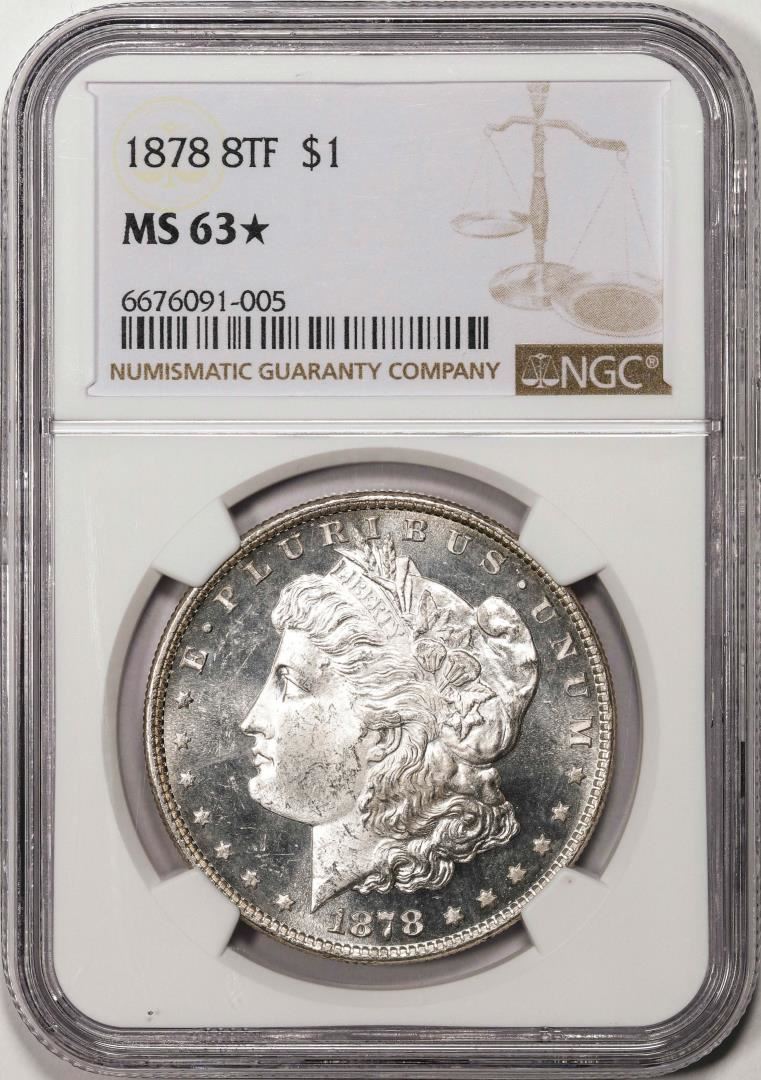 One 1878 8TF $1 Morgan Silver Dollar Coin NGC MS63* STAR. NGC Certified.