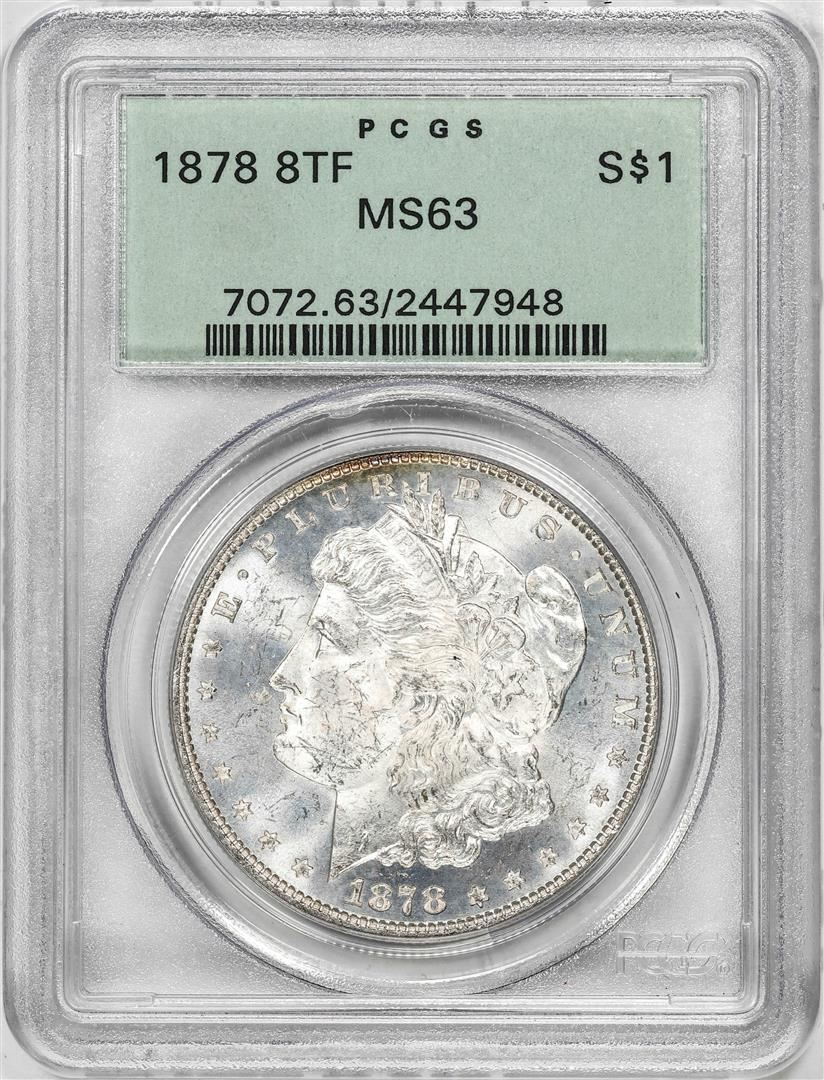 1878 8TF $1 Morgan Silver Dollar Coin PCGS MS63 Old Green Holder
