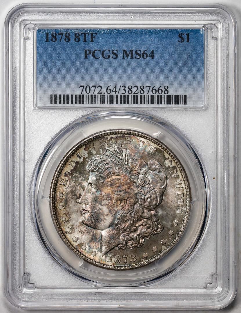 1878 8TF $1 Morgan Silver Dollar Coin PCGS MS64 Great Toning