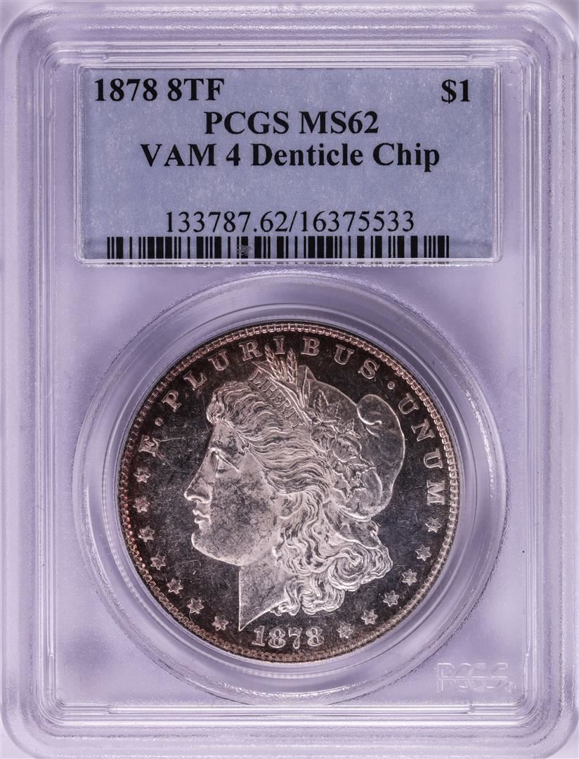 1878 8TF VAM-4 Denticle Chip $1 Morgan Silver Dollar Coin PCGS MS62