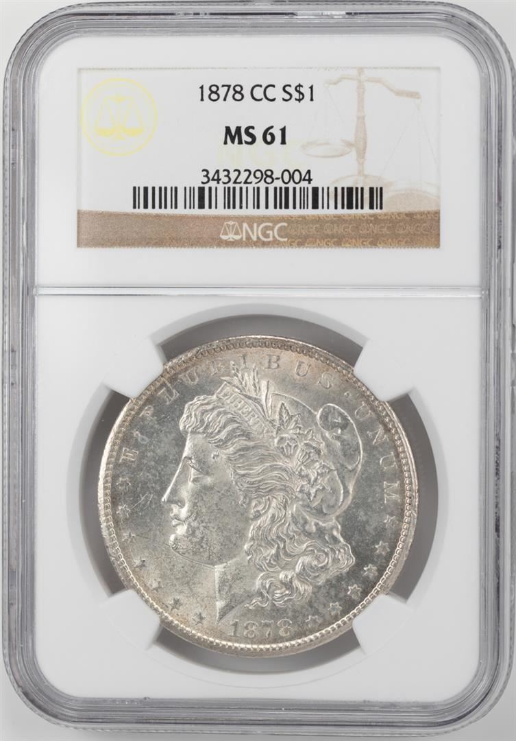 One 1878-CC $1 Morgan Silver Dollar Coin NGC MS61. NGC Certified.