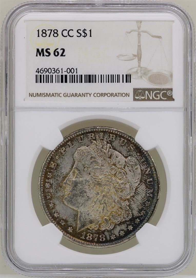 One 1878-CC $1 Morgan Silver Dollar Coin NGC MS62. NGC Certified.