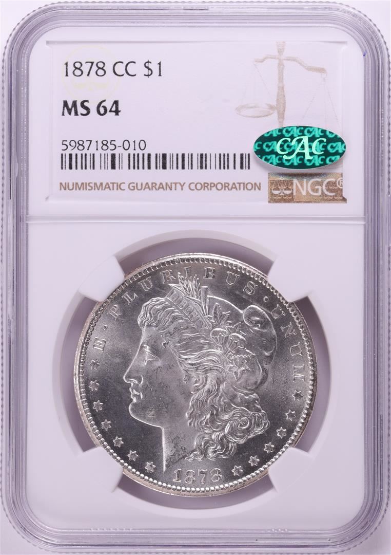 One 1878-CC $1 Morgan Silver Dollar Coin NGC MS64 CAC. NGC Certified.