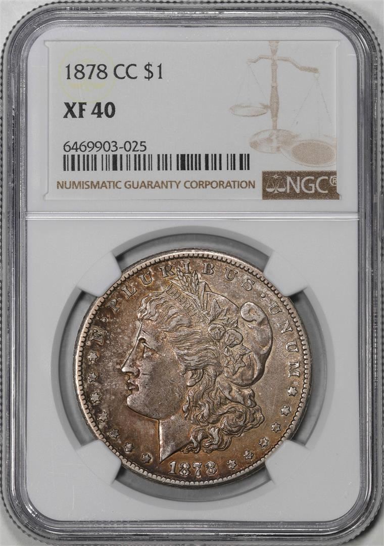 One 1878-CC $1 Morgan Silver Dollar Coin NGC XF40. NGC Certified.