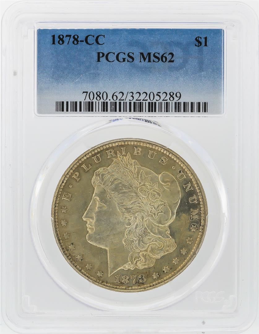 One 1878-CC $1 Morgan Silver Dollar Coin PCGS Graded MS62. PCGS Graded.