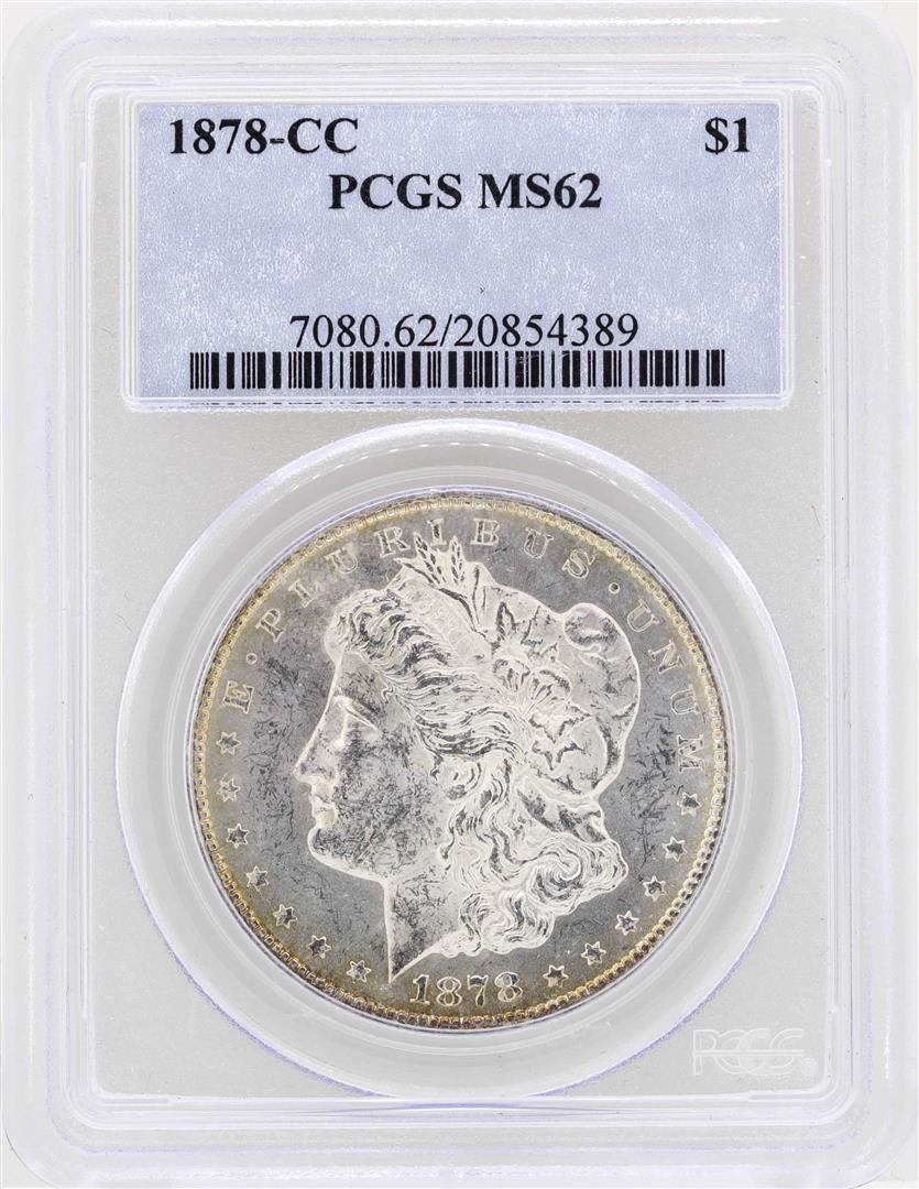 One 1878-CC $1 Morgan Silver Dollar Coin PCGS MS62. PCGS Graded.