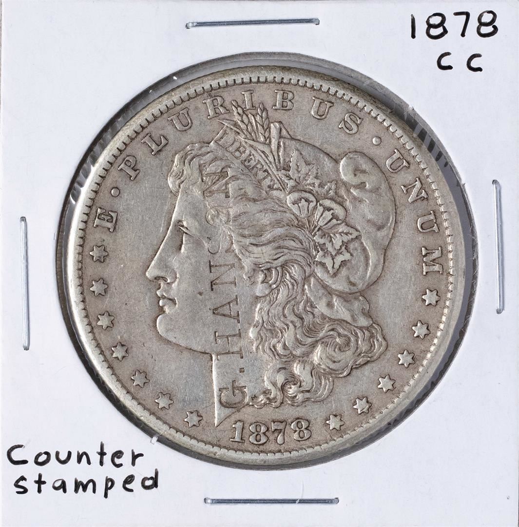 One 1878-CC $1 Morgan Silver Dollar Coin w/ Counter Stamp.