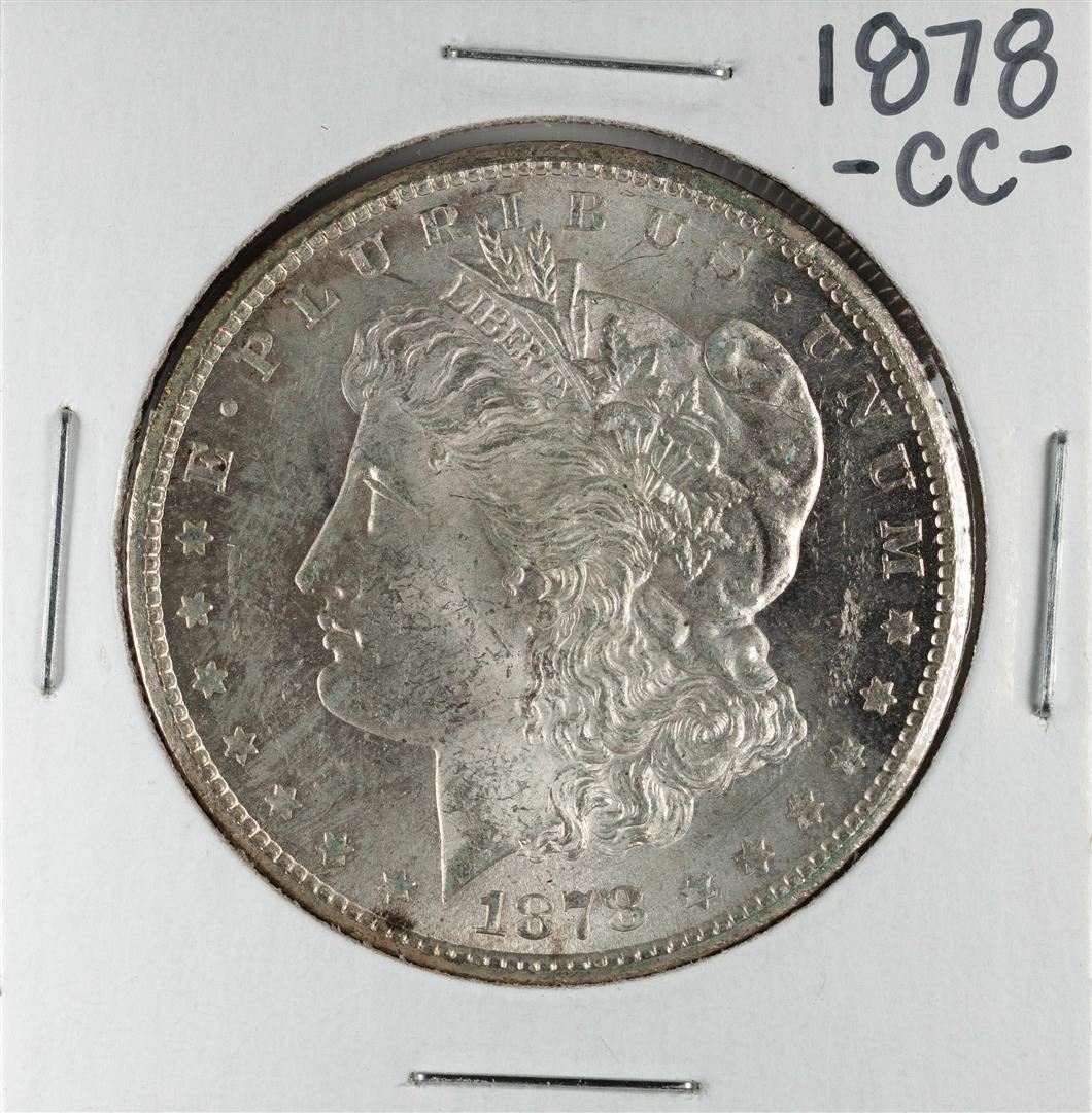 One 1878-CC $1 Morgan Silver Dollar Coin.