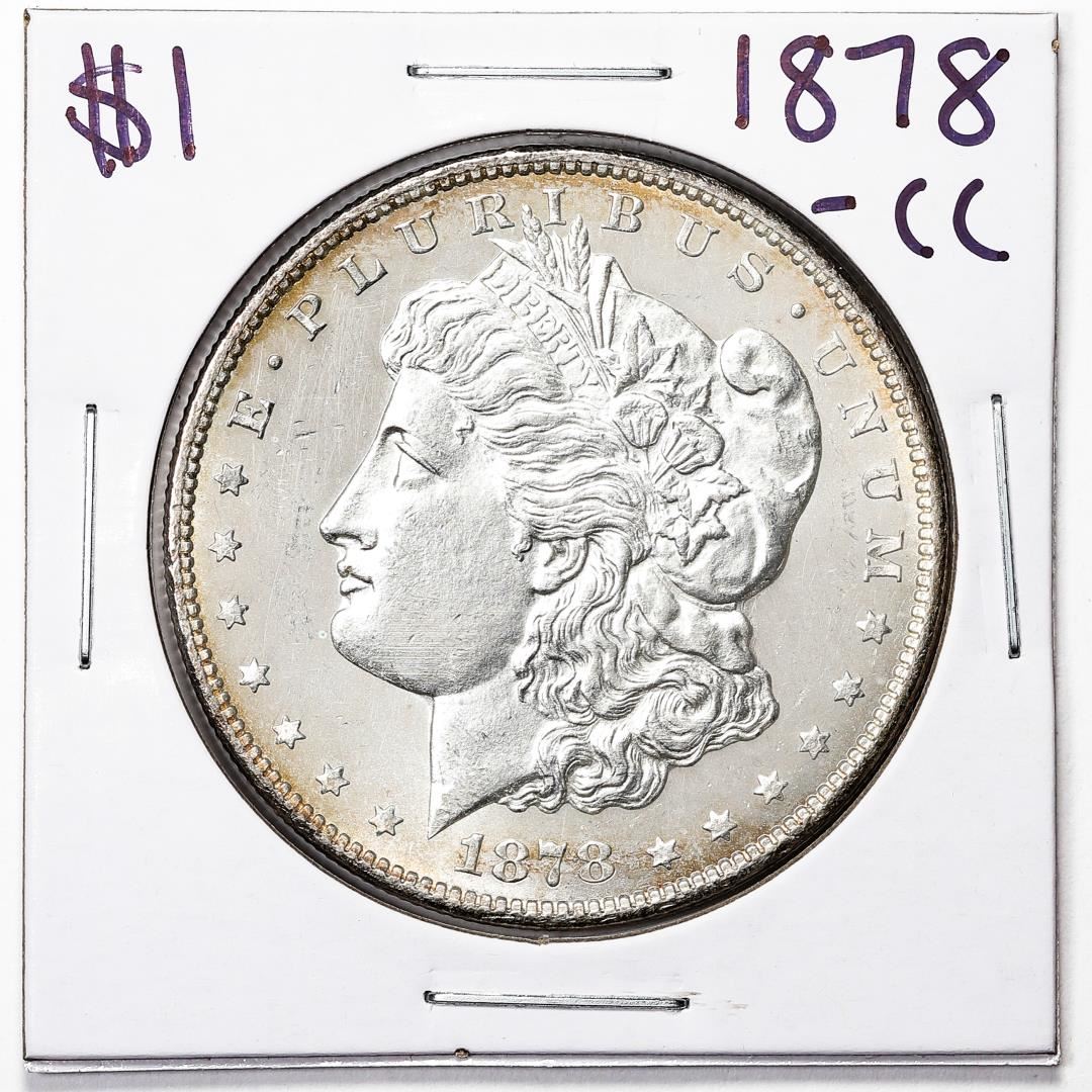 One 1878-CC $1 Morgan Silver Dollar Coin.