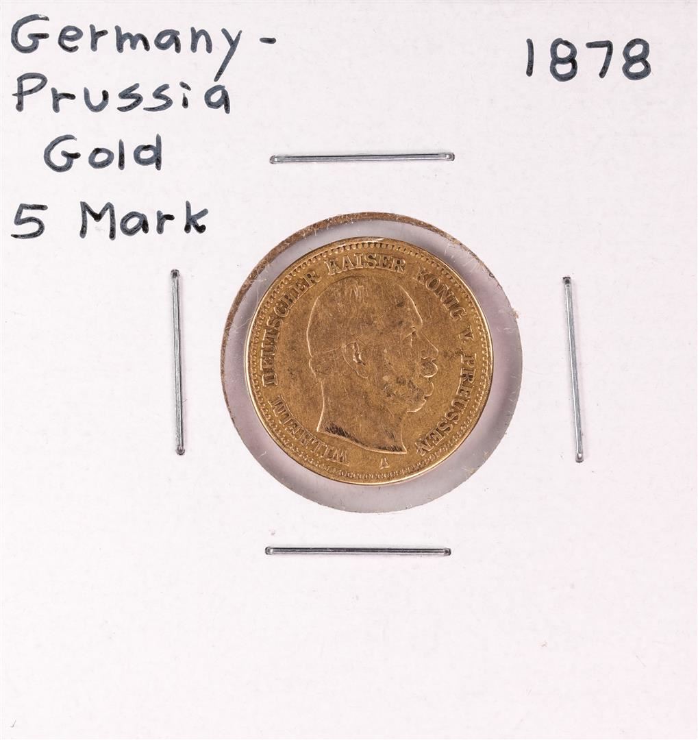 One 1878 Germany-Prussia 5 Mark Gold Coin.