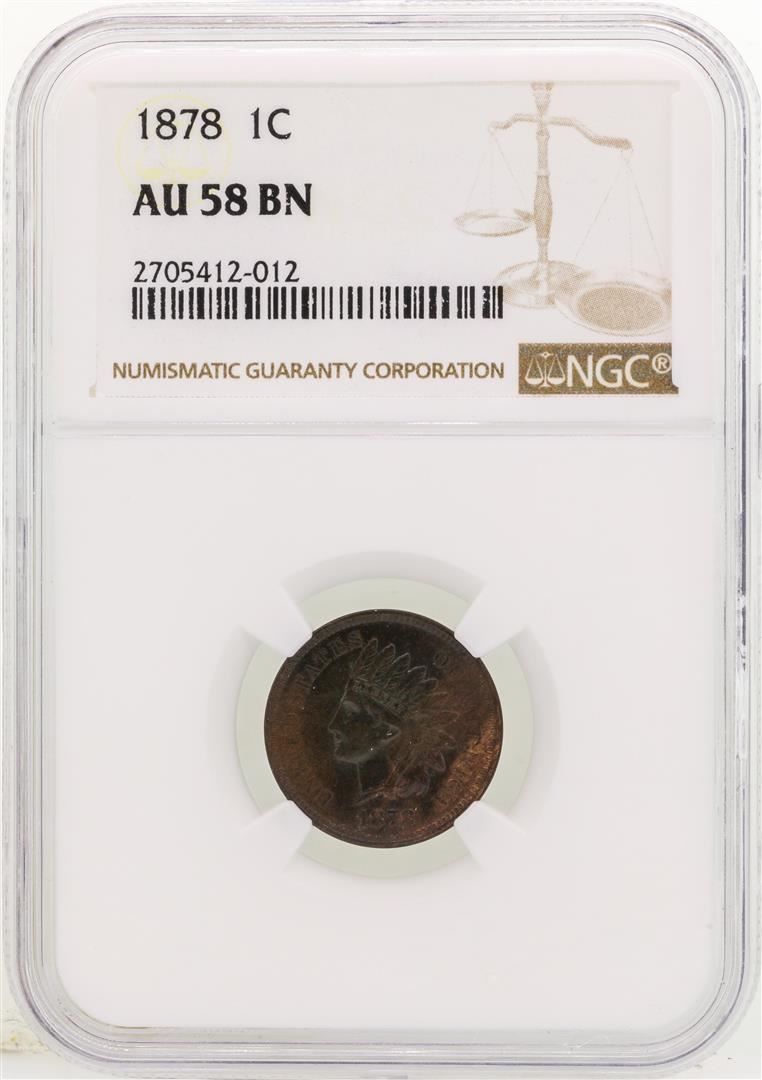 One 1878 Indian Head Cent Coin NGC AU58 BN. NGC Certified.