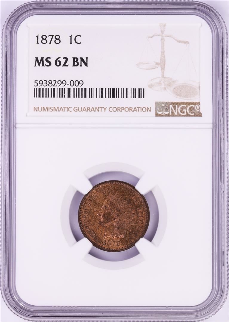 One 1878 Indian Head Cent Coin NGC MS62 BN. NGC Certified.