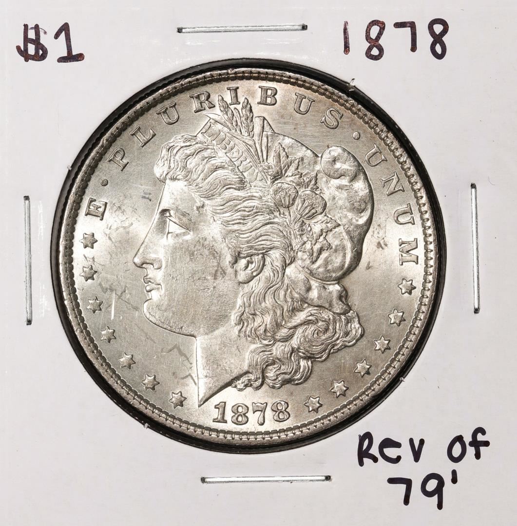 One 1878 Rev of 79' $1 Morgan Silver Dollar Coin.