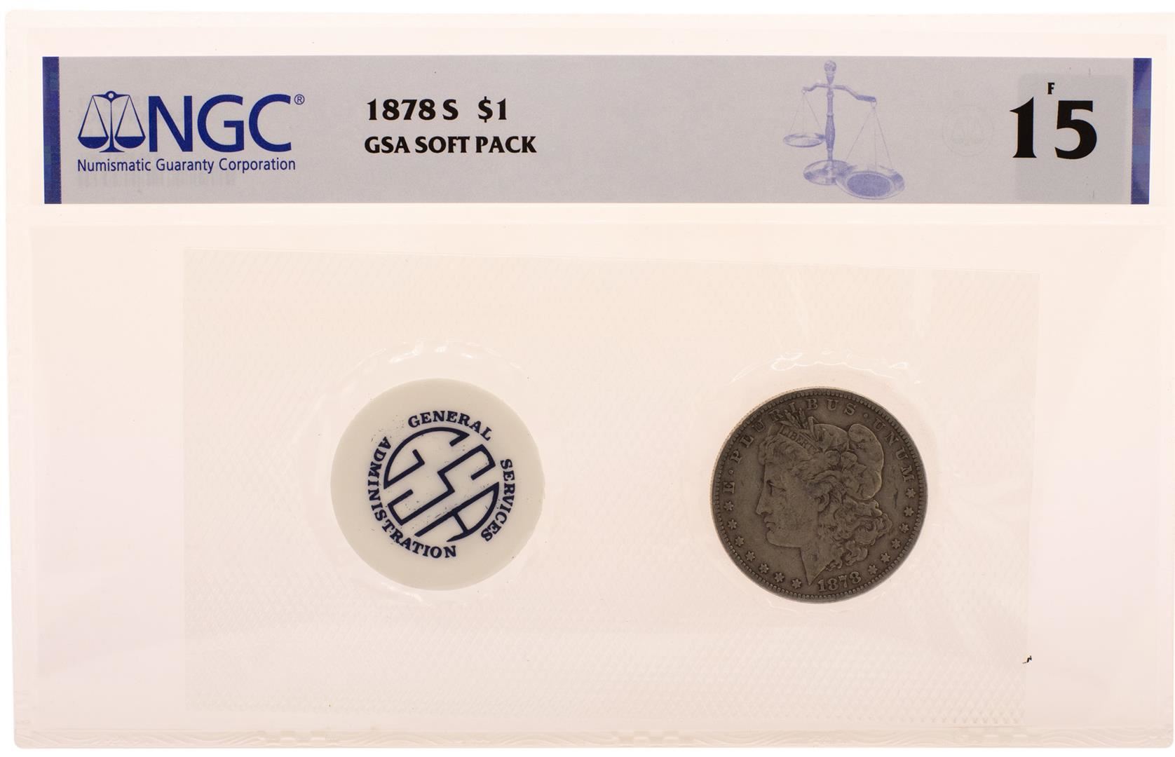 1878-S $1 Morgan Silver Dollar Coin GSA Soft Pack NGC F15