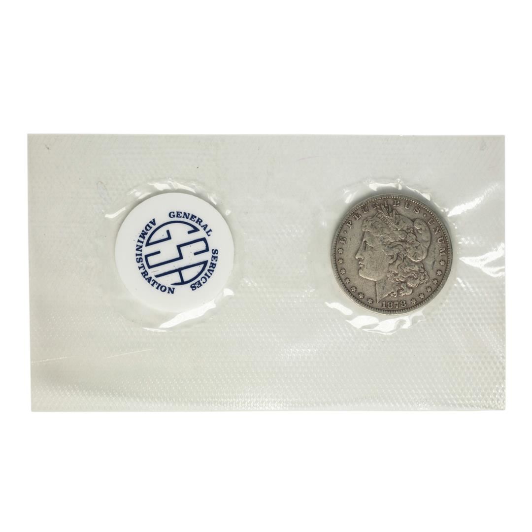 One 1878-S $1 Morgan Silver Dollar Coin GSA Soft Pack.