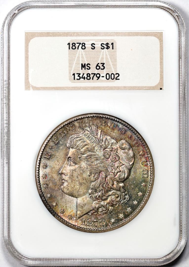 1878-S $1 Morgan Silver Dollar Coin NGC MS63 Amazing Toning Old Fatty Holder
