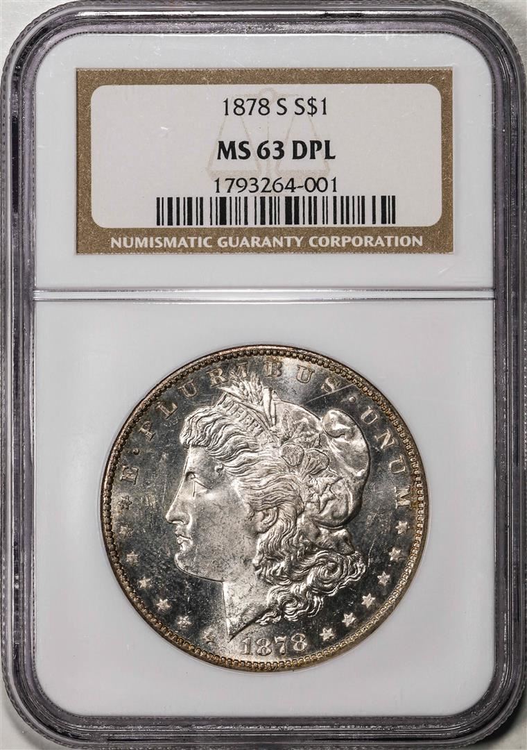 One 1878-S $1 Morgan Silver Dollar Coin NGC MS63 DPL. NGC Certified.
