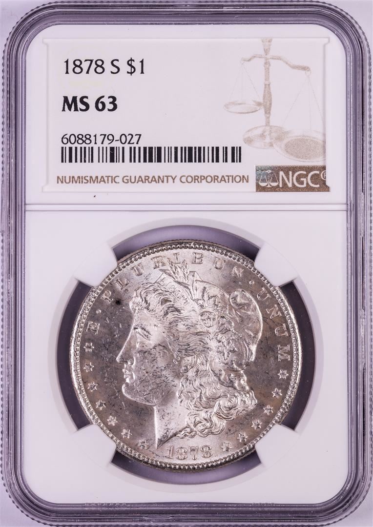 One 1878-S $1 Morgan Silver Dollar Coin NGC MS63.
