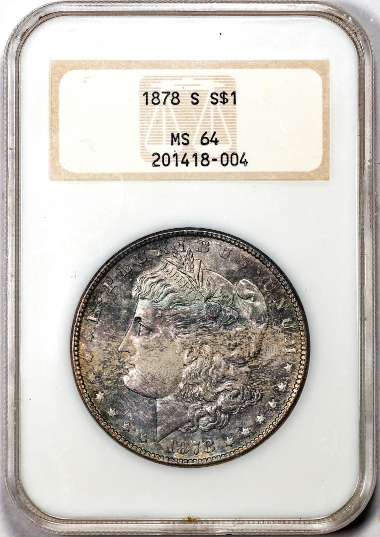 1878-S $1 Morgan Silver Dollar Coin NGC MS64 Great Toning Old Fatty Holder