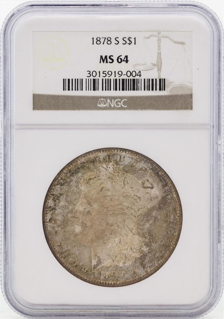 One 1878-S $1 Morgan Silver Dollar Coin NGC MS64. NGC Certified.