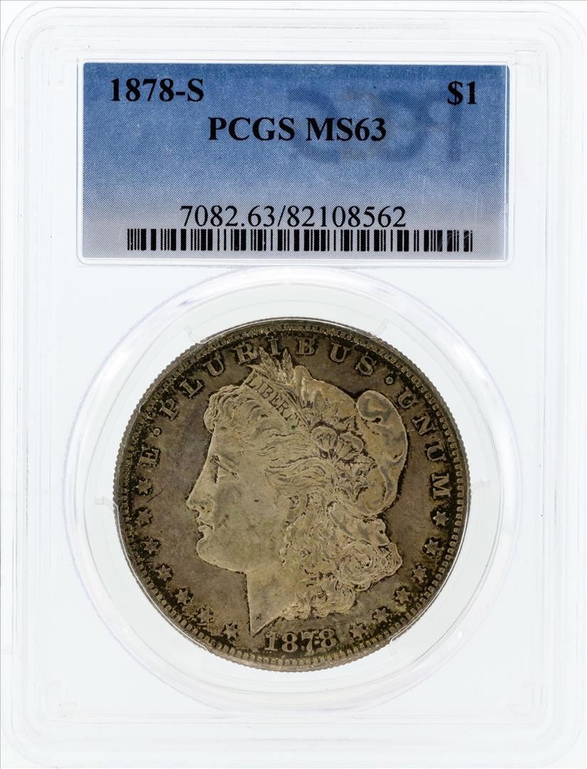 One 1878-S $1 Morgan Silver Dollar Coin PCGS MS63. PCGS Graded.