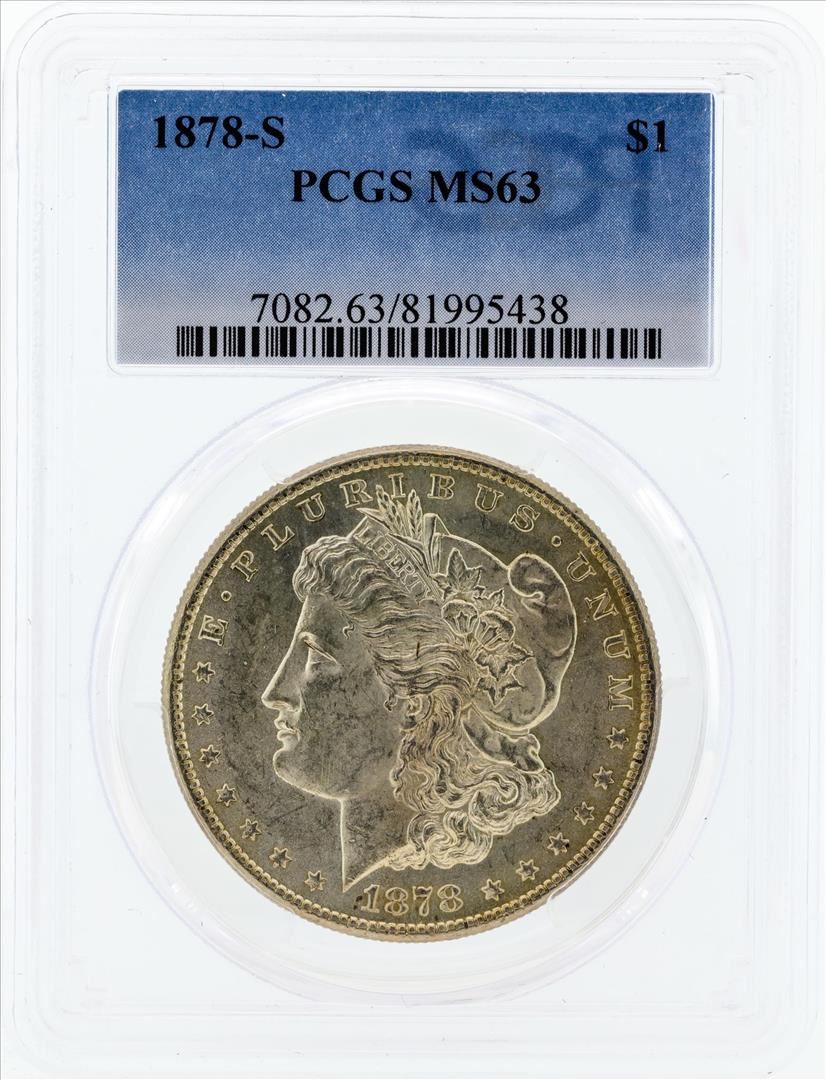 One 1878-S $1 Morgan Silver Dollar Coin PCGS MS63. PCGS Graded.