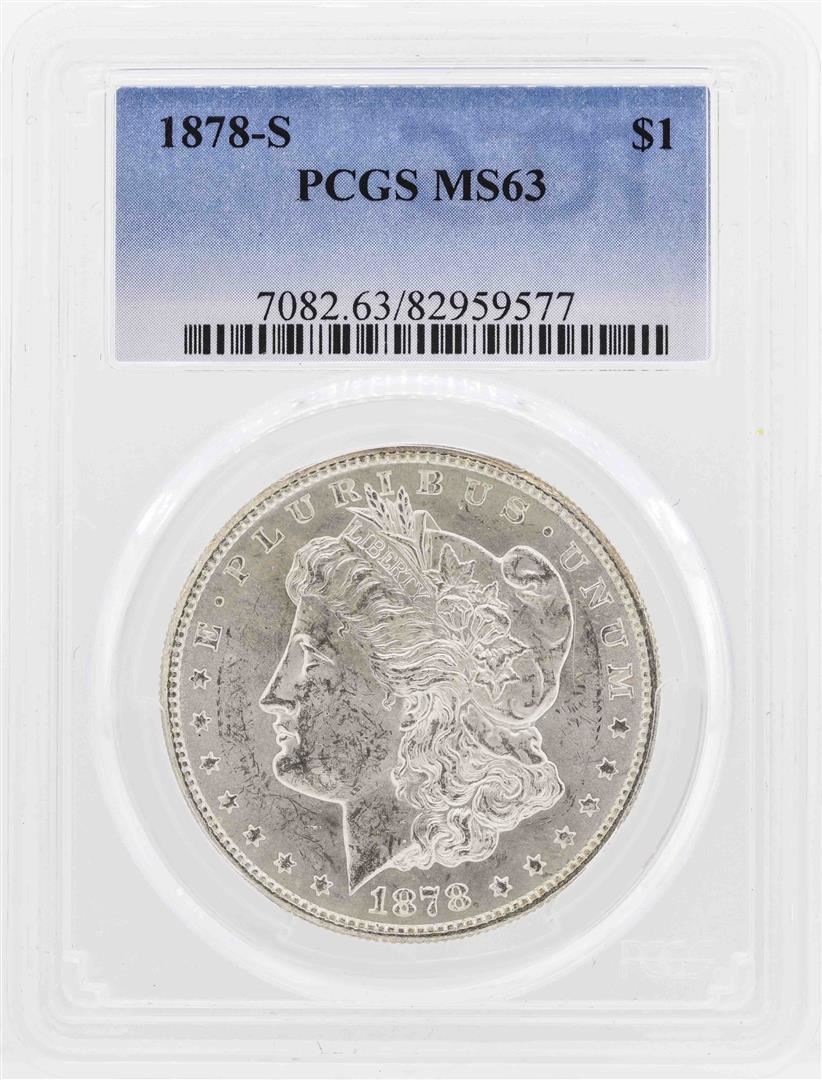 One 1878-S $1 Morgan Silver Dollar Coin PCGS MS63. PCGS Graded.
