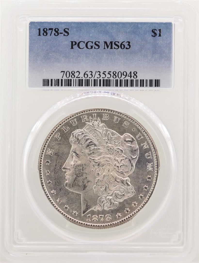 One 1878-S $1 Morgan Silver Dollar Coin PCGS MS63. PCGS Graded.