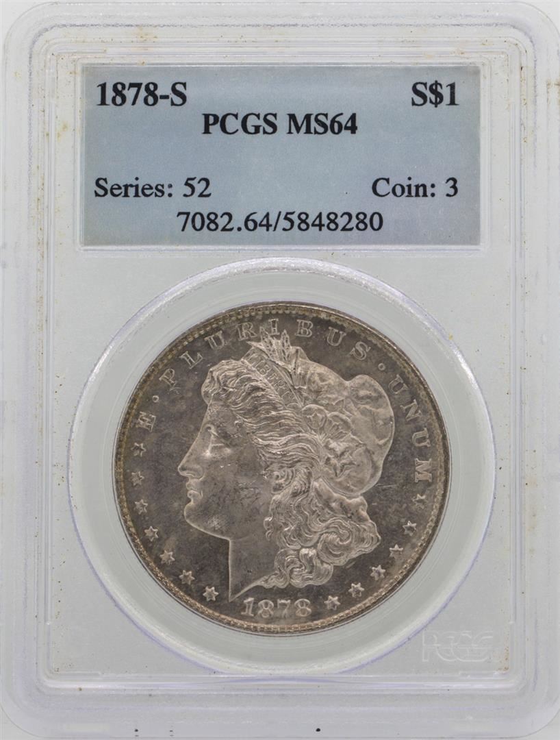 One 1878-S $1 Morgan Silver Dollar Coin PCGS MS64. PCGS Graded.