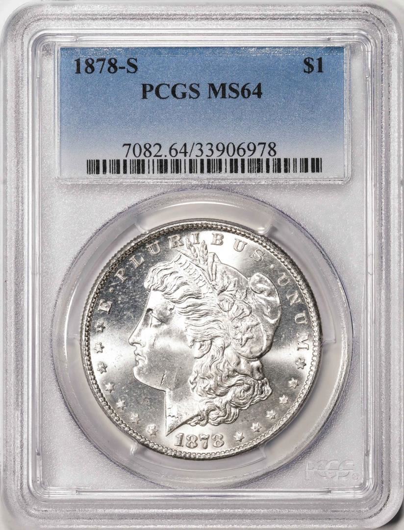 One 1878-S $1 Morgan Silver Dollar Coin PCGS MS64. PCGS Graded.