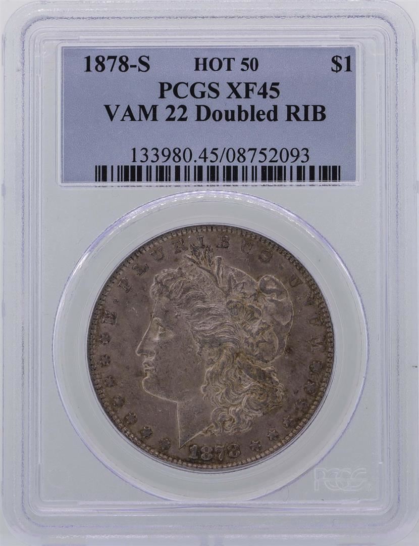 One 1878-S $1 Morgan Silver Dollar Coin VAM-22 PCGS XF45 Hot 50. PCGS Graded.