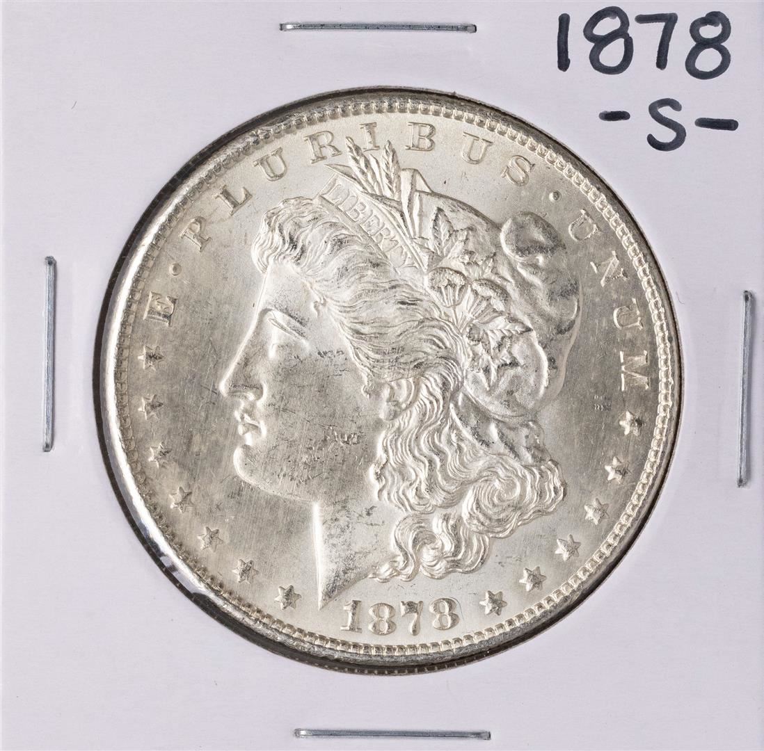 One 1878-S $1 Morgan Silver Dollar Coin.