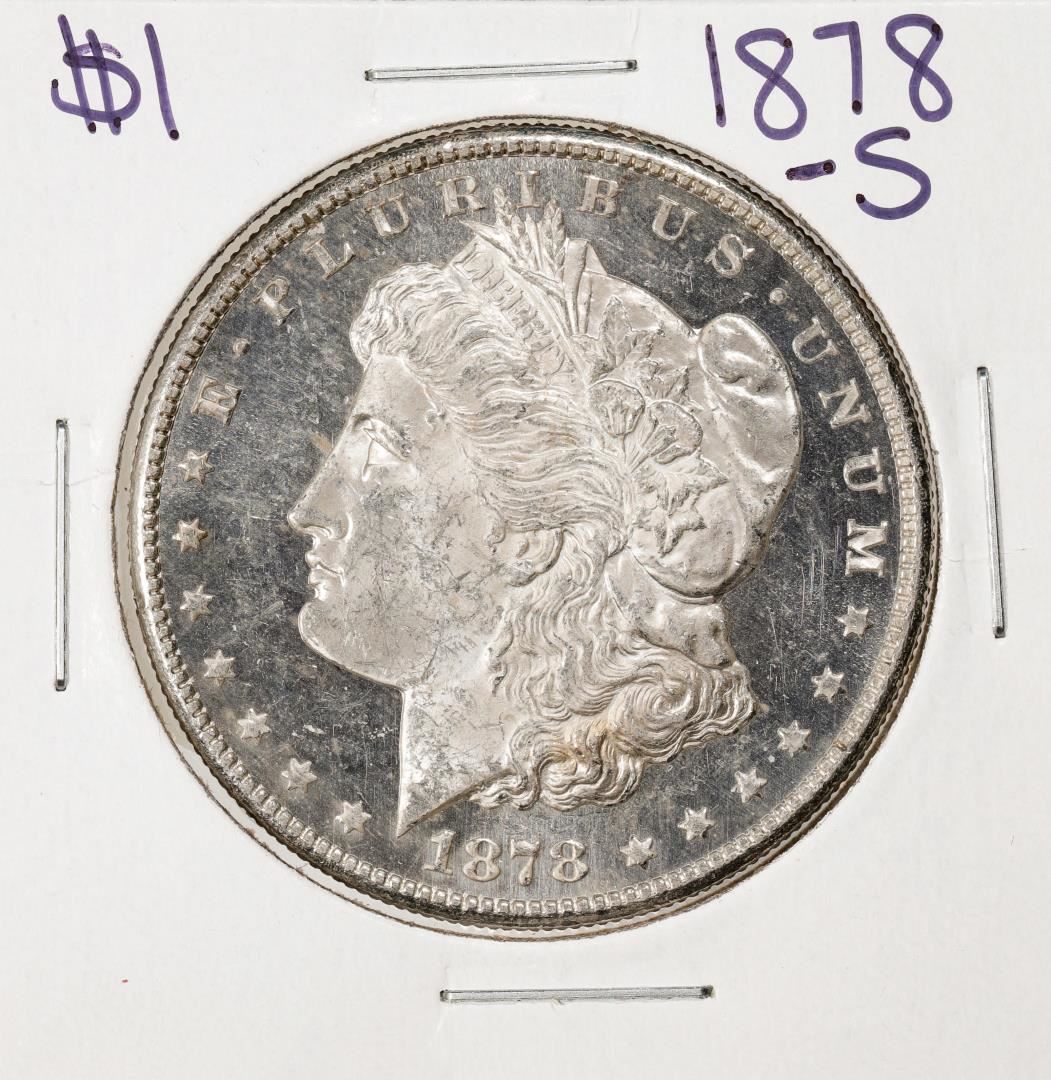 One 1878-S $1 Morgan Silver Dollar Coin.