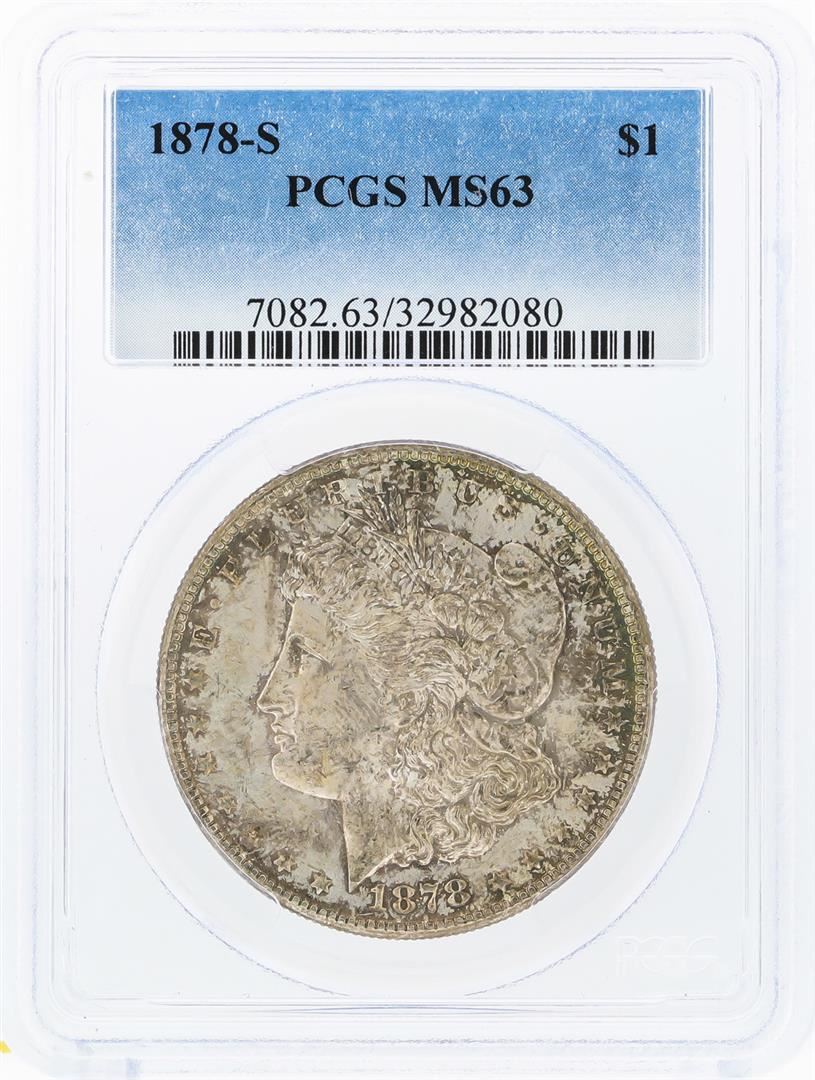 One 1878-S $1 Morgan Silver Dollar PCGS Graded MS63. PCGS Graded.