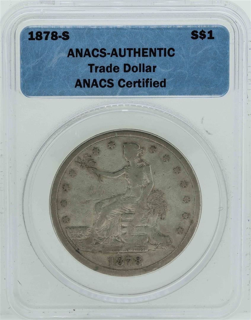 One 1878-S $1 Silver Trade Dollar Coin ANACS Authentic. ANACS Certified.