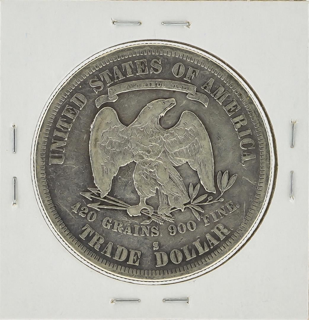 One 1878-S $1 U.S. Trade Silver Dollar Coin.