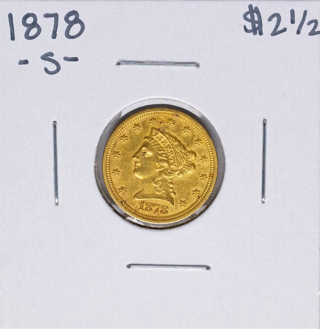 One 1878-S $2 1/2 Liberty Head Quarter Eagle Gold Coin.